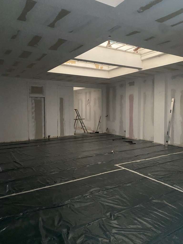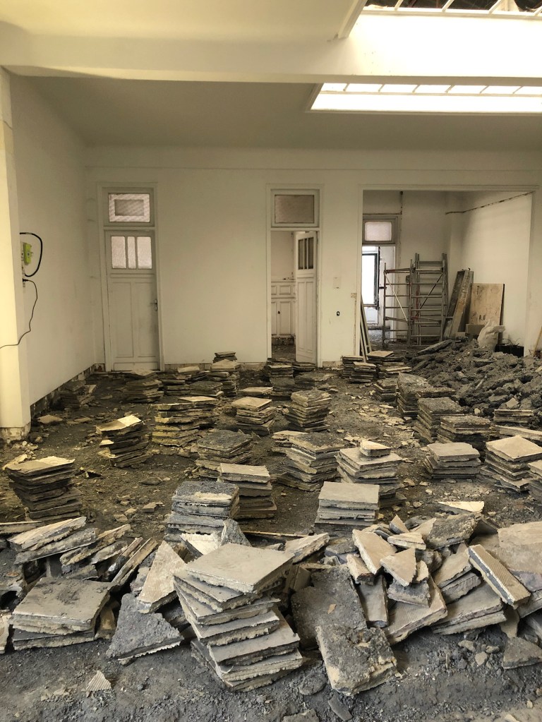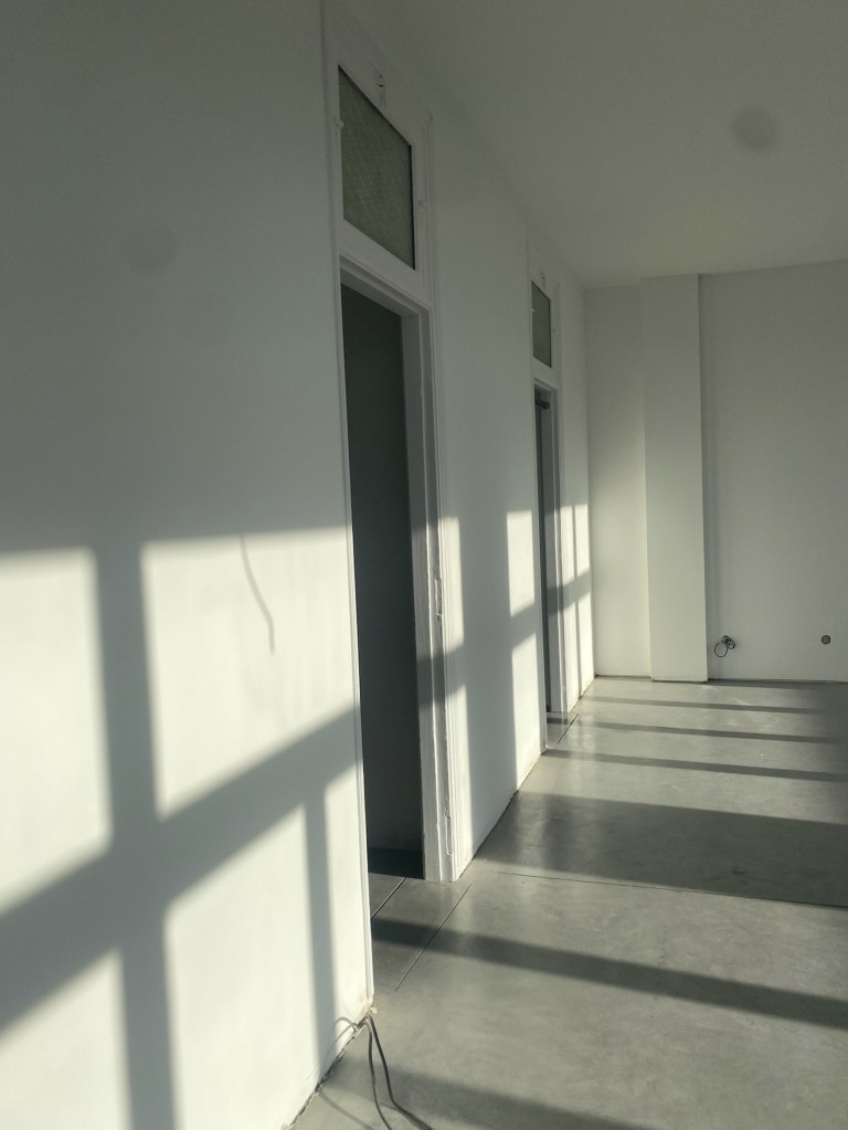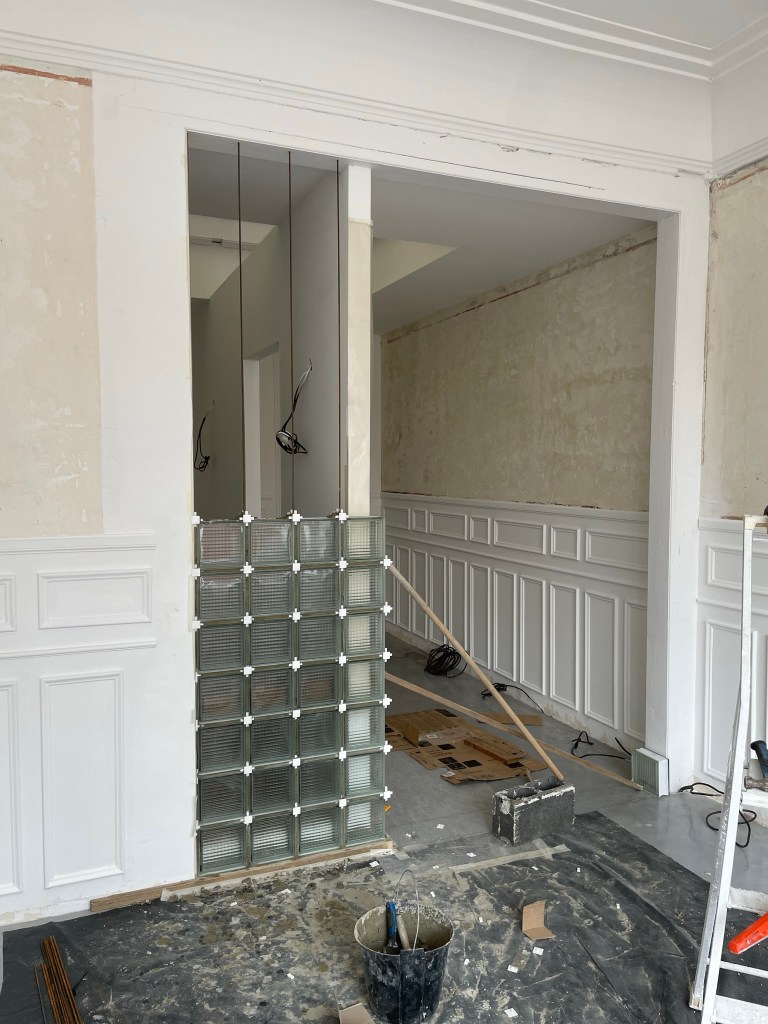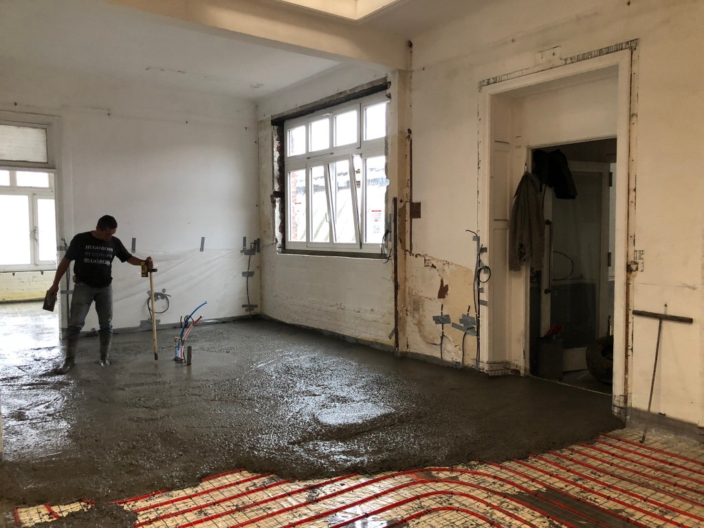 Travaux réalisés : Aménagement intérieurs / Curage + démolition des éléments non porteurs / Remplacement des menuiseries extérieures / Isolation de l’ensemble des sols, murs & plafonds / Installation électrique / Installation plomberie + plancher chauffant / Chape béton quartzé / Plâtrerie / Peinture / Faïence