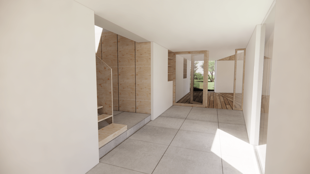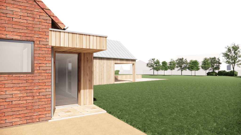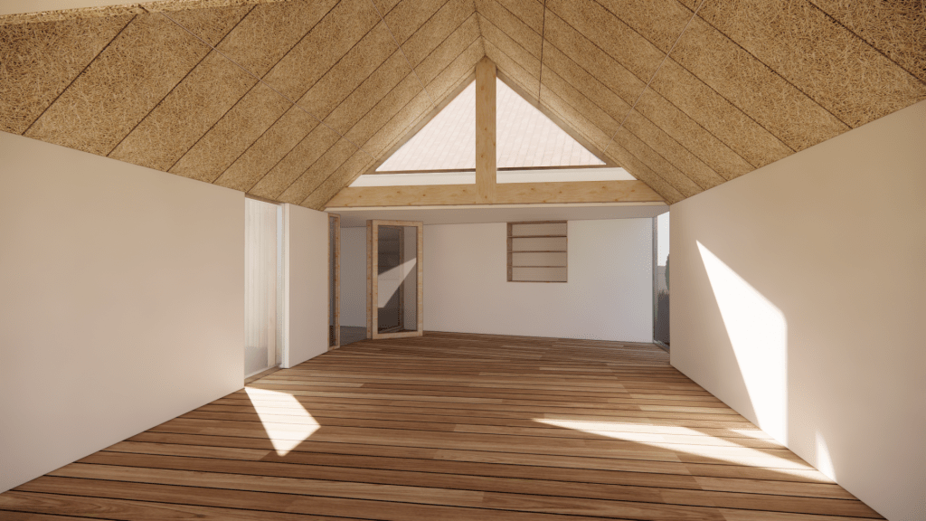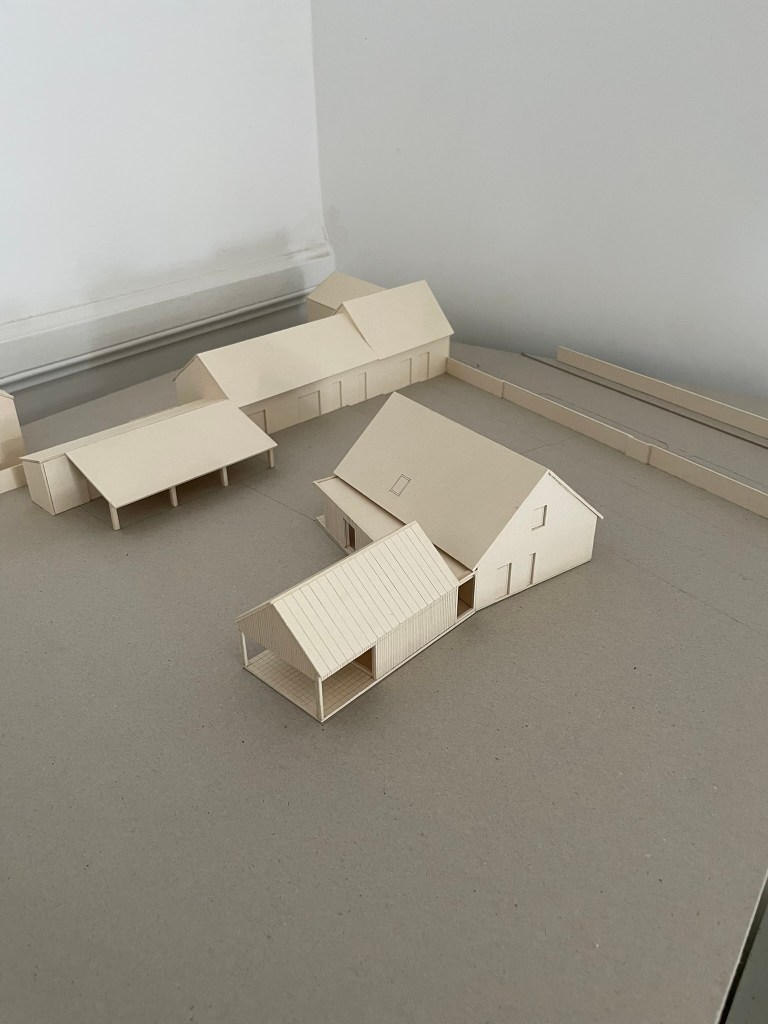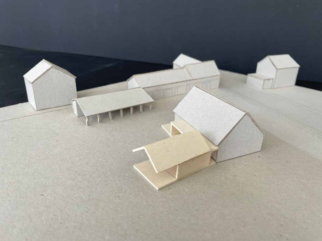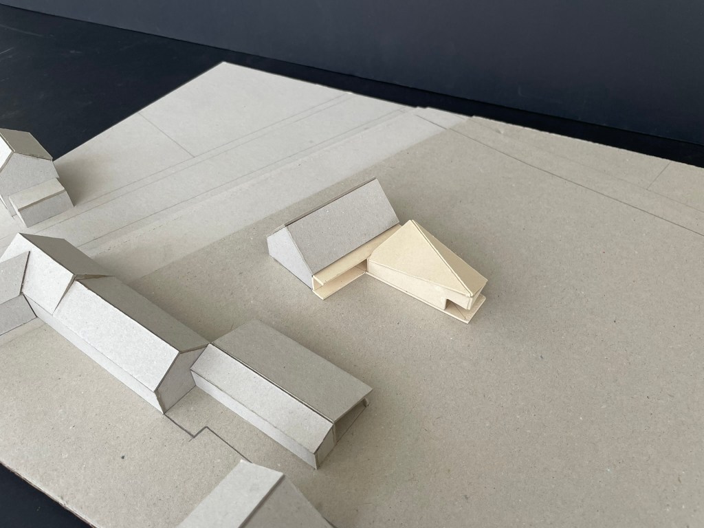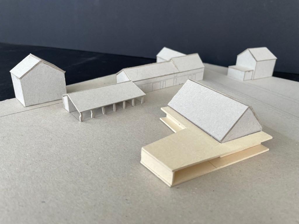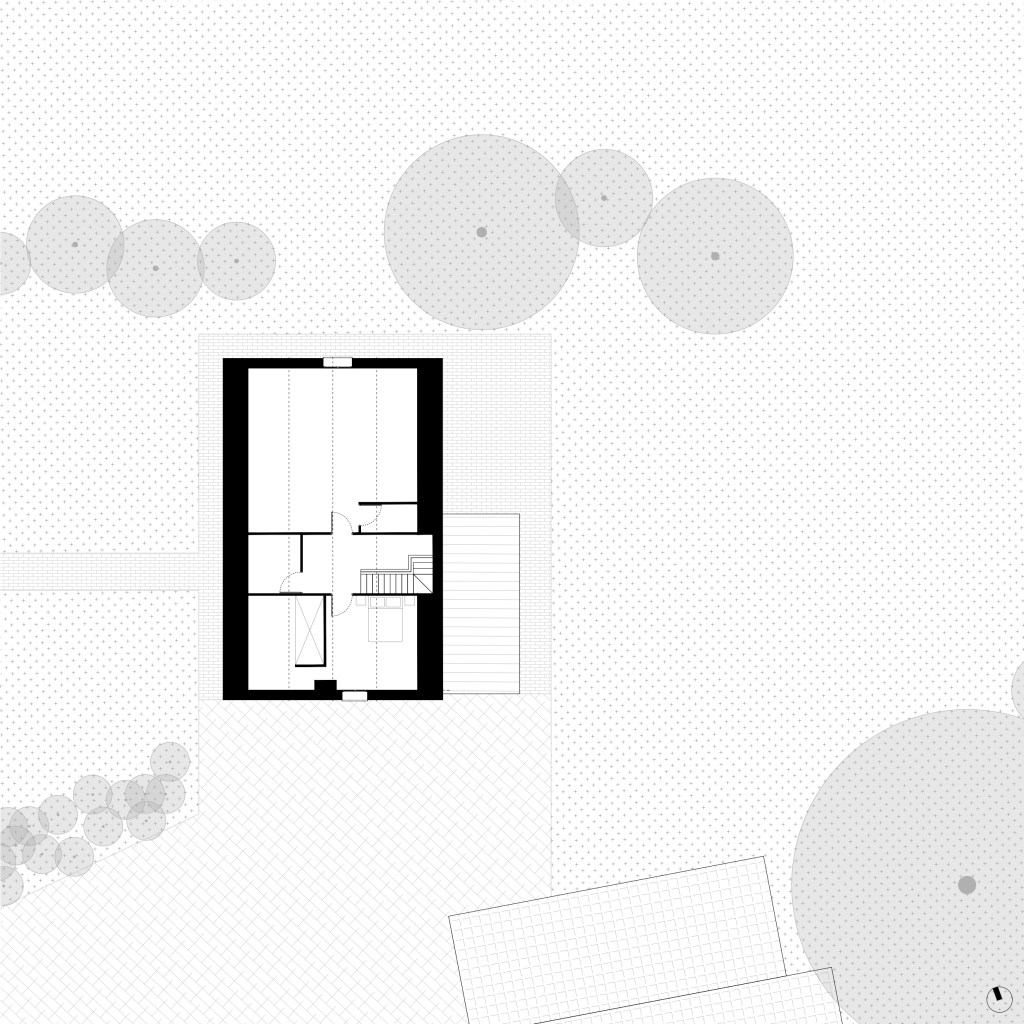 Le projet s’inscrit dans ce tissu urbain existant : l’extension réorganise les espaces entre bâtiments et contexte, autour d’un espace rappelant la typologie des fermes locales. L’orientation de l’extension d’Est en Ouest affirme la rencontre entre un héritage rural et une réinterprétation architecturale contemporaine.