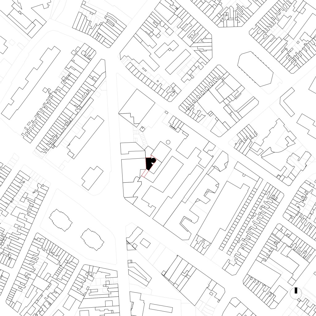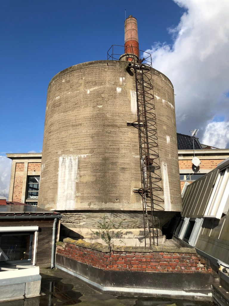 Le site se trouve au 102 boulevard Montesquieu à Roubaix, dans la copropriété de la Teinturerie. Enclavée entre plusieurs bâtiments, la parcelle est accessible uniquement par l’ancienne chaufferie réhabilitée. Elle est entièrement occupée par un espace extérieur, permettant d’accéder sous l’ancienne cuve d’eau sur pilotis en béton.