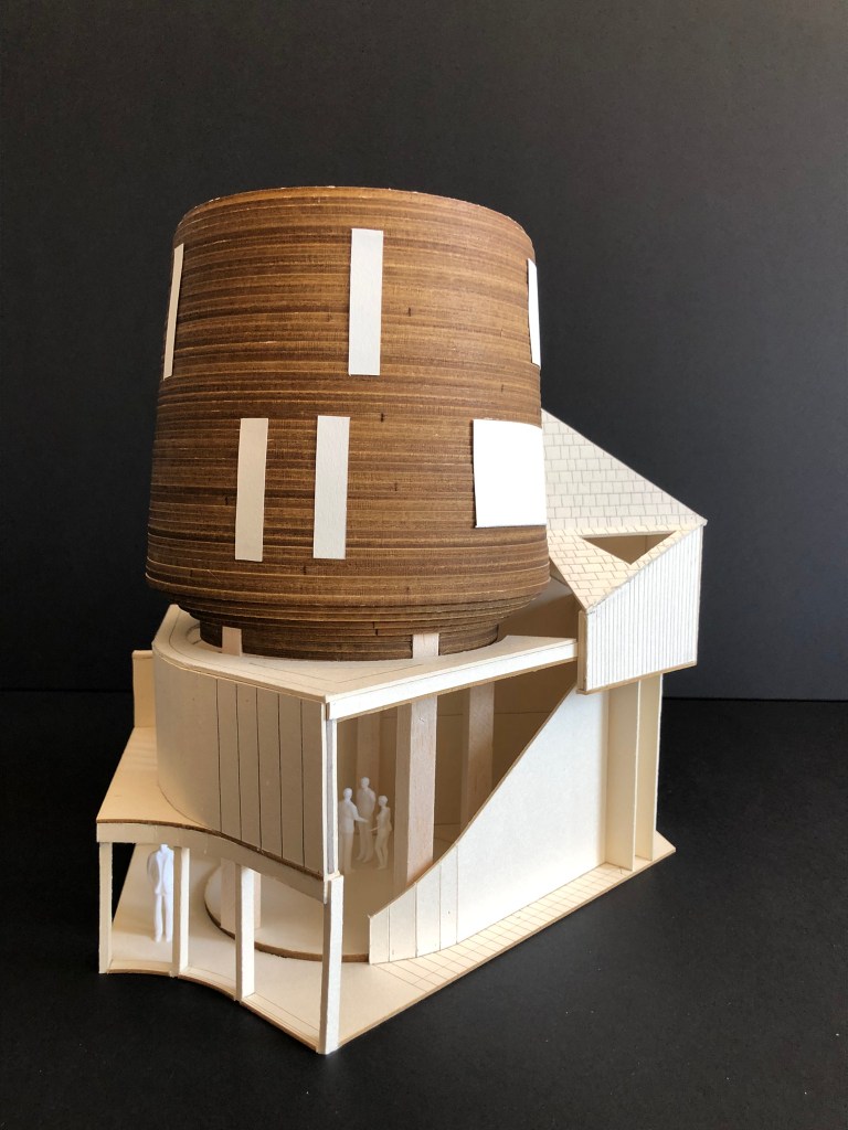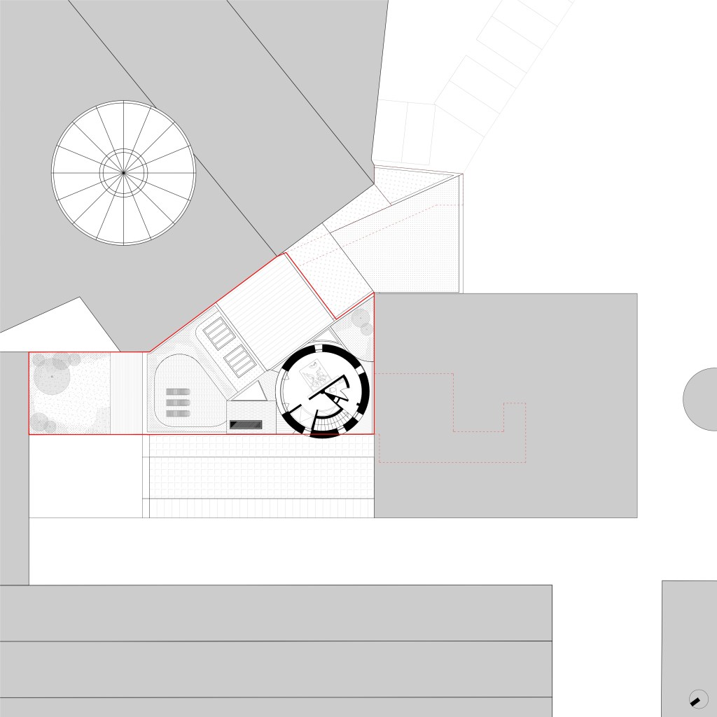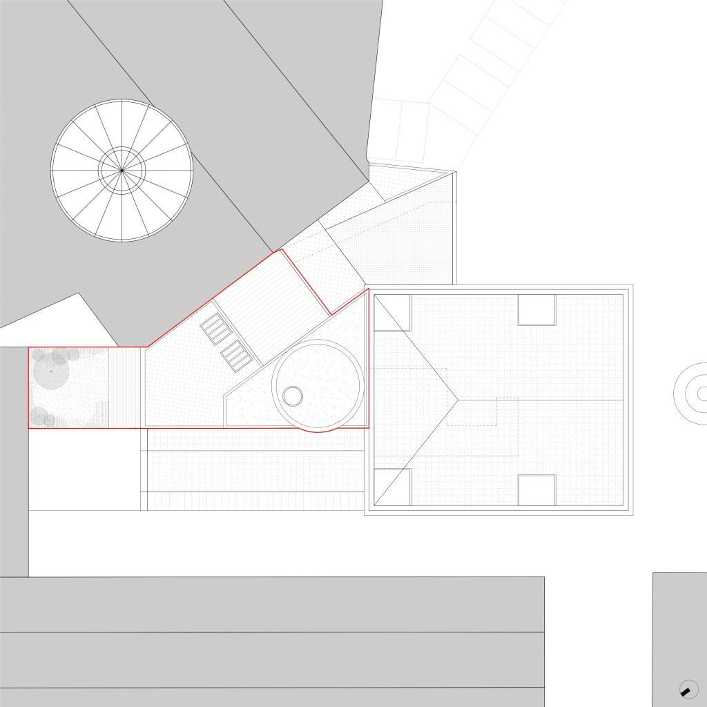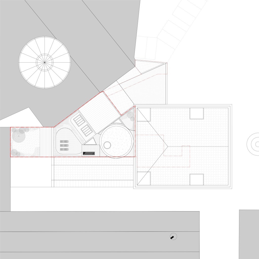 Le projet prévoit la réhabilitation du château d’eau en chambre d’hôte et de l’espace extérieur du rez-de-chaussée en salle polyvalente. Cet espace central relie les différentes zones du projet : l’habitation existante et l’espace cuisine/technique au rez-de-chaussée, ainsi que les chambres d’hôtes et la terrasse extérieure aux étages.