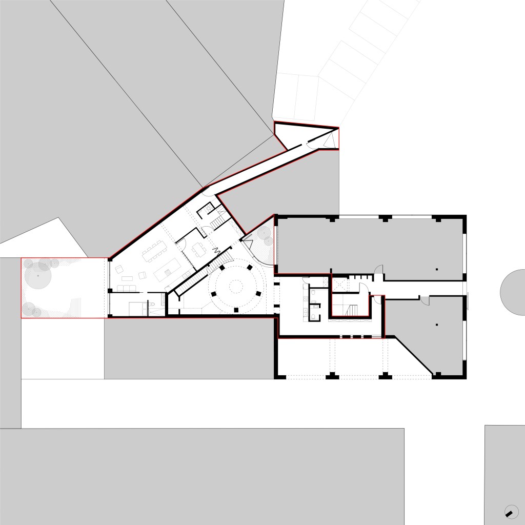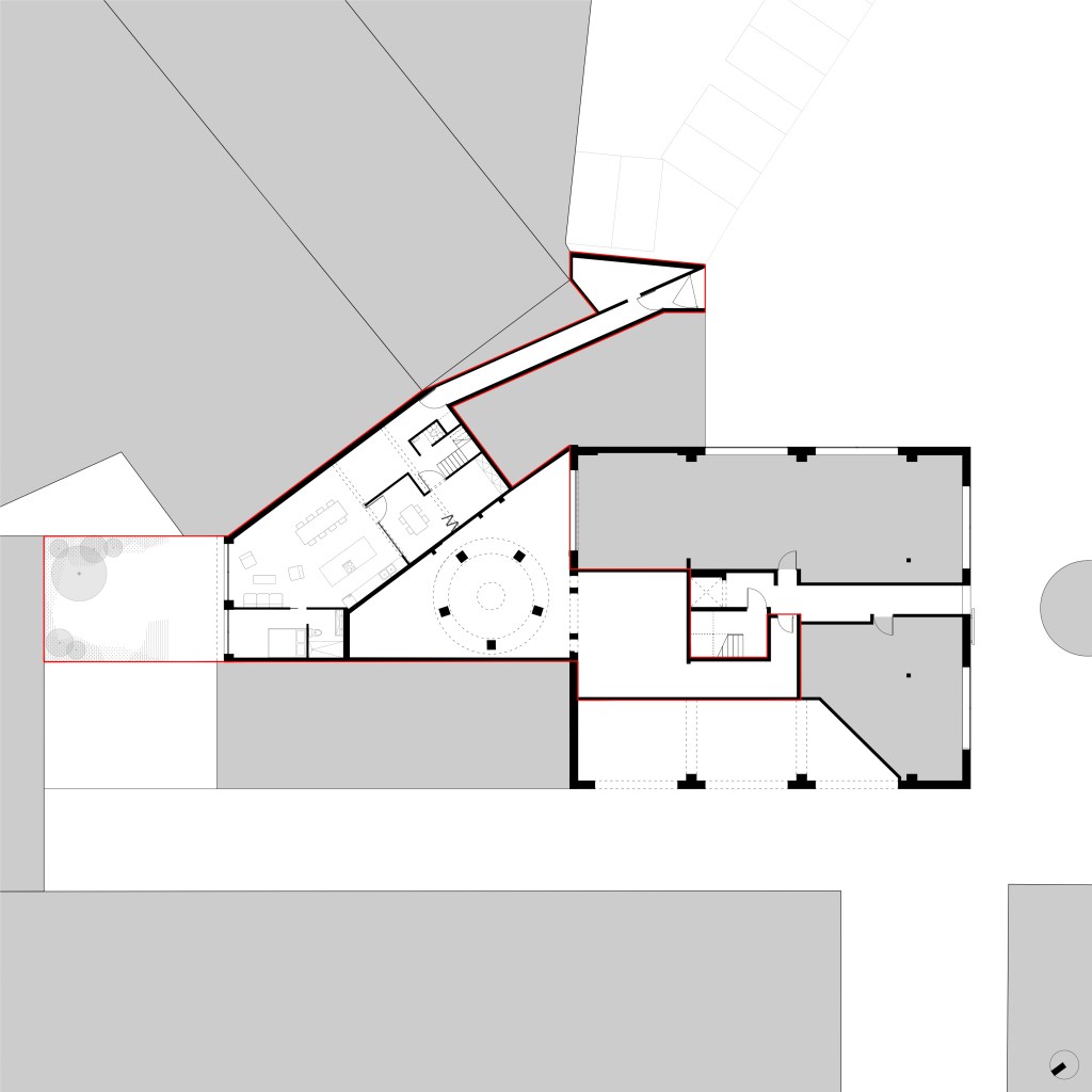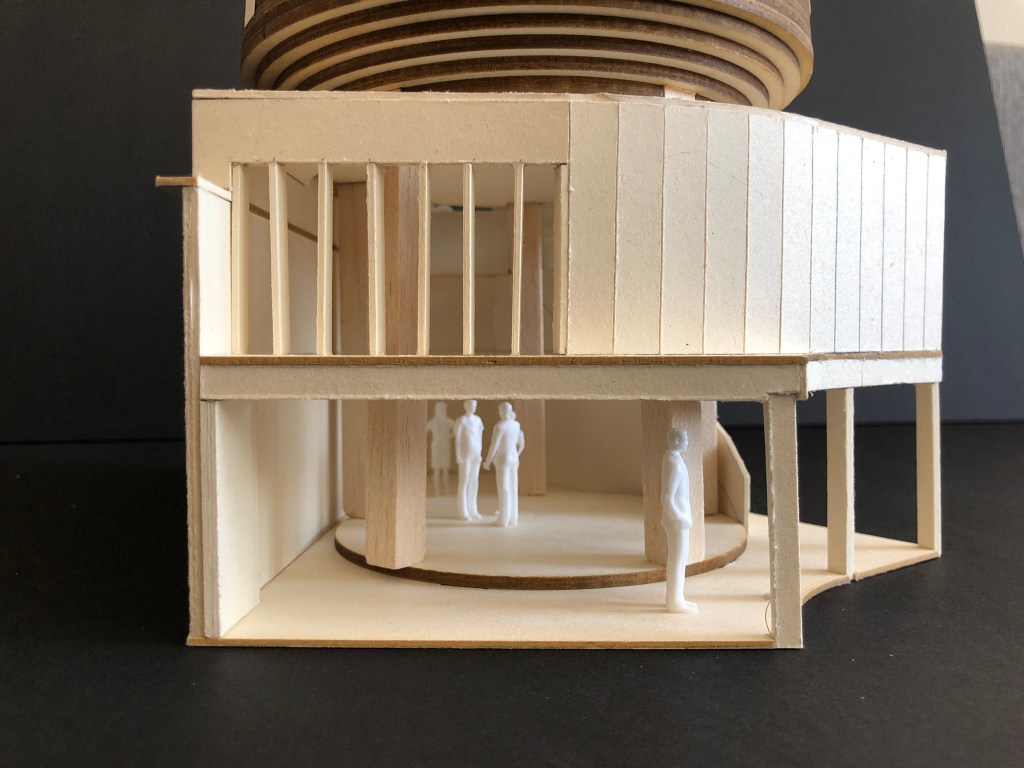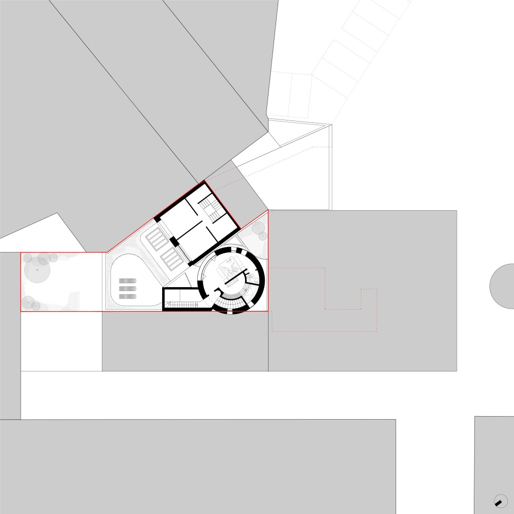 Le projet prévoit la réhabilitation du château d’eau en chambre d’hôte et de l’espace extérieur du rez-de-chaussée en salle polyvalente. Cet espace central relie les différentes zones du projet : l’habitation existante et l’espace cuisine/technique au rez-de-chaussée, ainsi que les chambres d’hôtes et la terrasse extérieure aux étages.