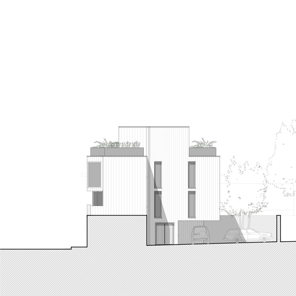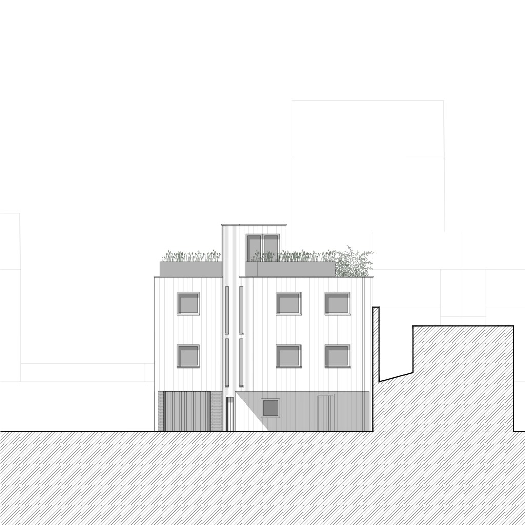 - Un retrait de 4m en fond de parcelle par rapport à la limite non lattérale induisant une hauteur maximale de 8m pour la façade arrière
