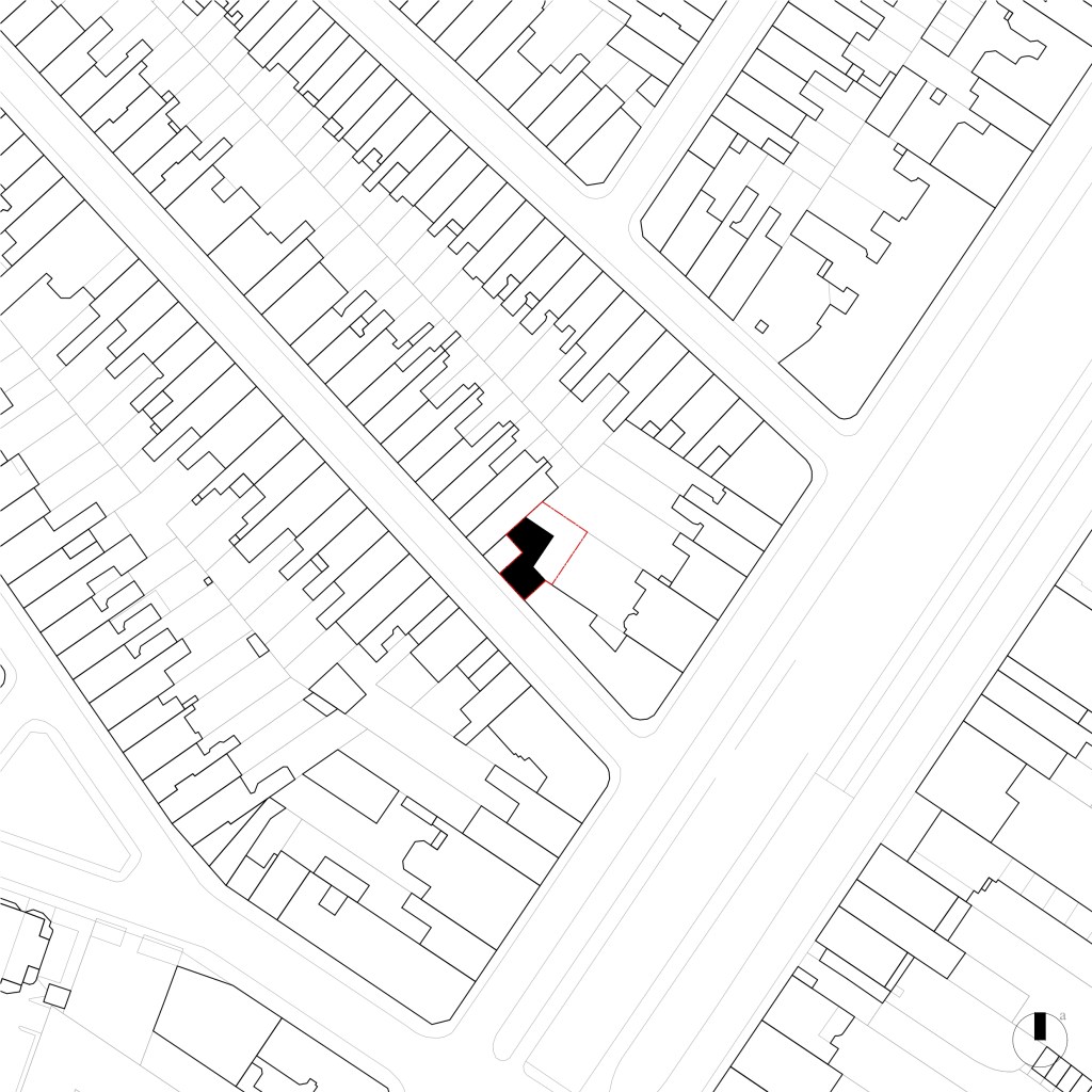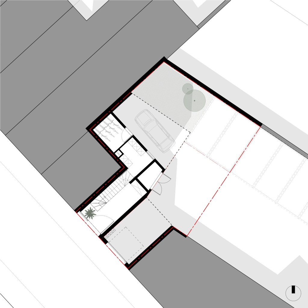 Le projet se situe à La Madeleine (59110). La parcelle concernée est accessible uniquement depuis la rue Berthelot. Elle est bordée latéralement par des constructions de hauteurs variables, et en fond de parcelle par un jardin mitoyen. Le terrain présente une topographie légèrement marquée, avec une pente générale d’environ 4 %, variant selon les emplacements. La limite de l’espace public se trouve en partie basse du terrain, tandis que la limite mitoyenne en fond de parcelle est située environ 50 cm au-dessus du niveau de la rue.